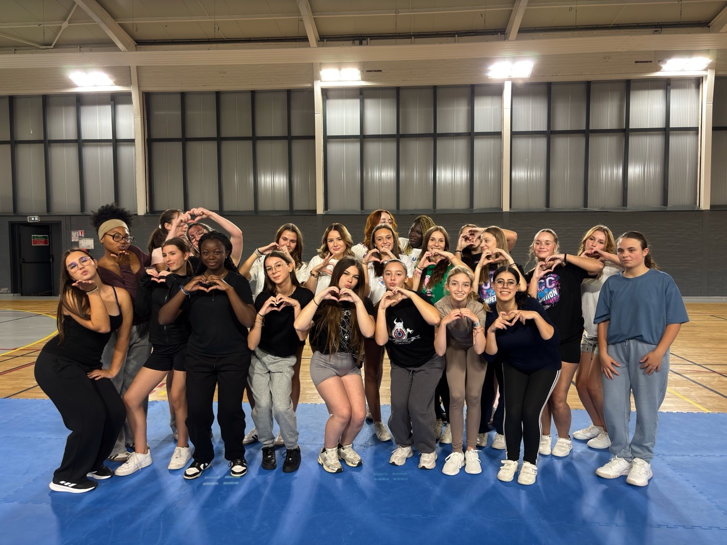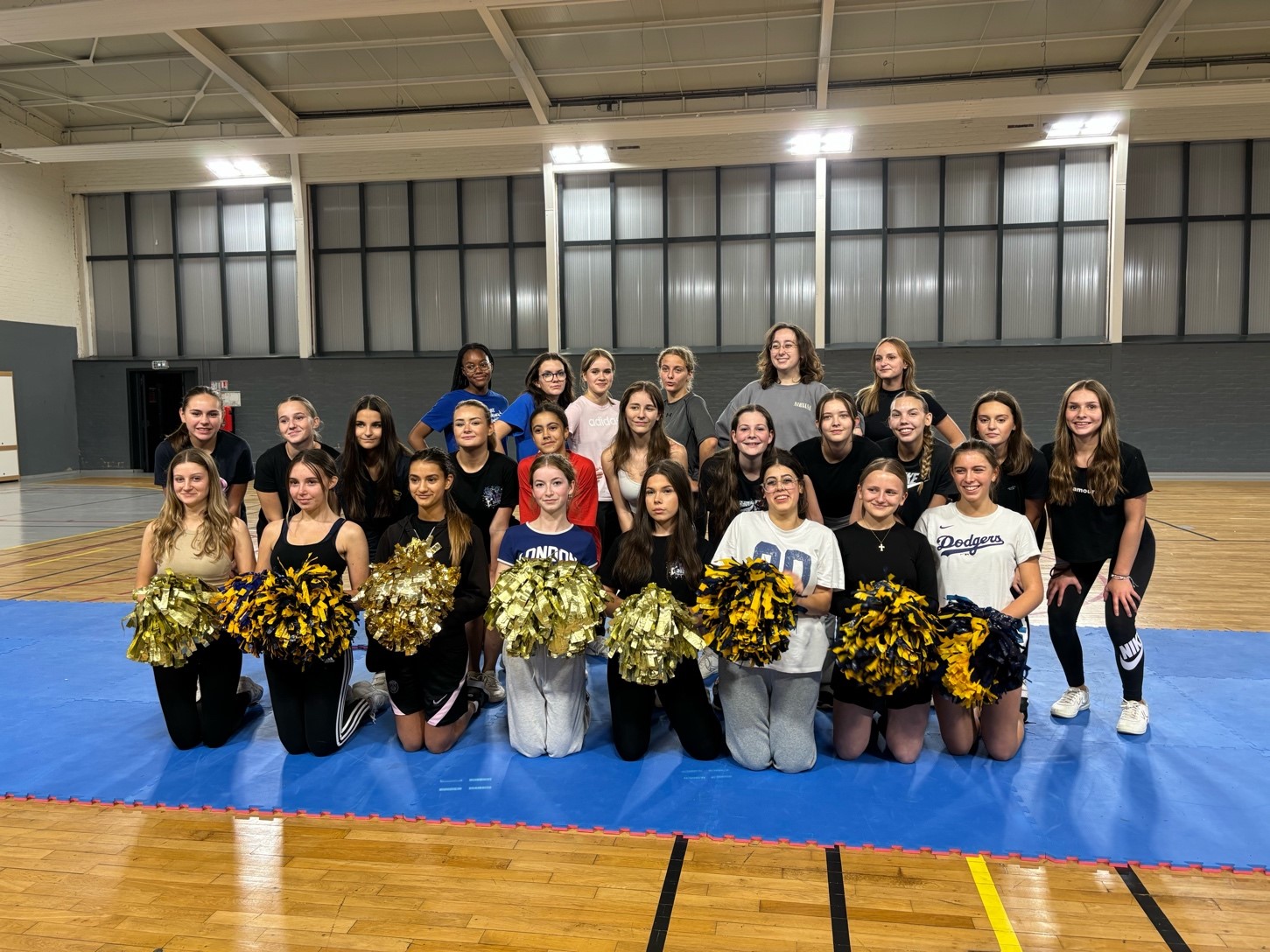 Cette séance d’initiation s’est déroulée le vendredi 12 septembre 2025 de 19h à 21h. L’entraînement a commencé avec des phases d’échauffement puis nos élèves ont découvert les bases de ce sport, à savoir apprentissage de mouvements chorégraphiés, travail d’équilibre et de synchronisation, ainsi que la découverte de l’esprit d’équipe et de la coordination indispensables au cheerleading.